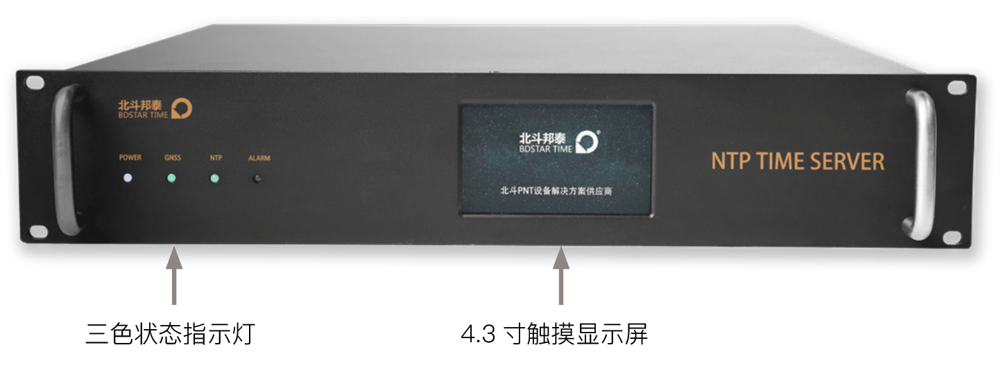全面支持最新 NTP 对时协议、MD5 安全加密协议及证书加密 协议,网络时间精度可达微秒级。 同时支持 TOD、10MHz、1PPS、日志记录、USB 端口升级 下载和干接点告警功能,配合北斗邦泰自主研发的全网时间 统一监控软件,轻松实现网络时间同步及有效监控。