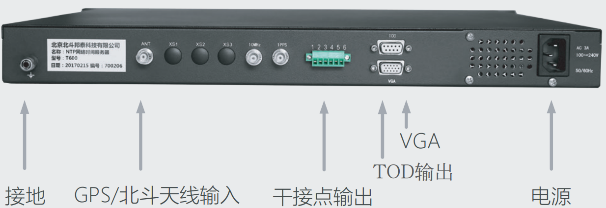 天线入:BNC,1 路,GPS 北斗信号输入,输出 5V DC
