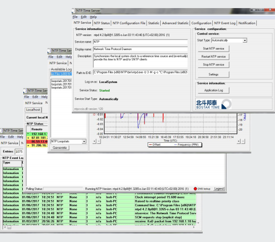提供 window 系统 NTP 协议校时软件,以服务方式运行,并提供 运行状态监视、控制、配置界面。