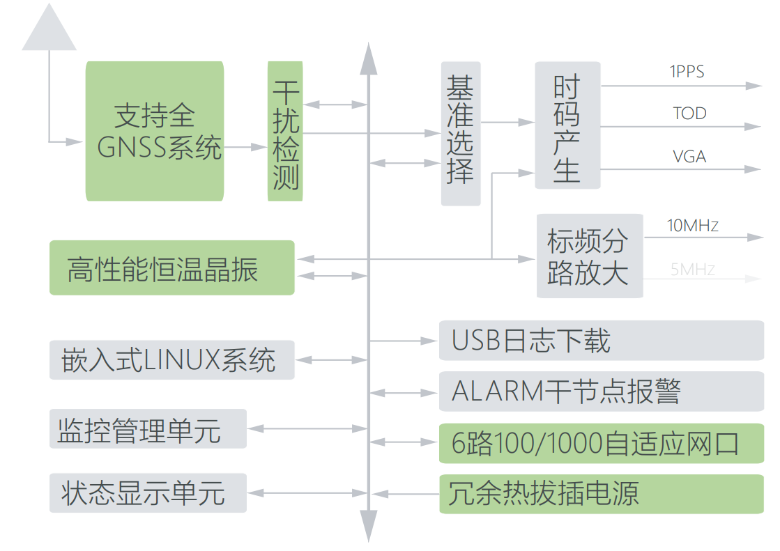 T600-BDOCP 标准时间同步时钟创新性的融合了参考源无缝切换技术、 高精度时间间隔测量TIC技术和自适应精密频率测控技术。采用模块化设计, 由北斗接收机、GPS 接收机、高性能工业级主板、人机界面及监控管理单元、 本地时钟驯服单元、输出接口模块和电源模块组成。 服务器性能● 全 GNSS 参考一级时钟服务器,同步精度 1µs● 用户终端同步授时精度:100µs(局域网典型值) ● 用户容量:200 万台以上 ● NTP 请求量:23000 次 / 秒 ● 可连接另一台 NTP 服务器,构成 2 级时钟 ● 支持 10000 条日志记录功能 物理及环境参数● 尺寸:1U 机箱 440×44.5×364mm● 电源: 2 路热插,220V±20% 47Hz ~ 63Hz ● 工作温度:-10℃~ +55℃(主机)-40℃~ +75℃(天线) ● 存贮温度:-45℃~ +85℃ ● 湿度:95%无冷凝 ● 功耗:50W 重量:3Kg