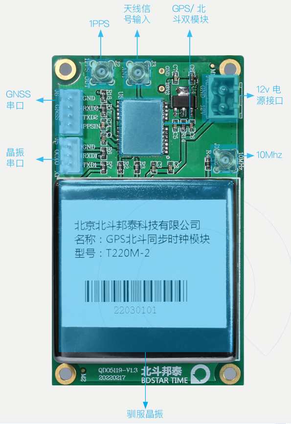 T220M-2 GPS北斗同步时钟模块融合高精度授时型GPS接收板的信号,采用同频相移频率信号进行晶振的驯服,提高对晶振的控制精度,提供良好的守时时频信号。定制驯服时间系统,脱离1PPS,在无法正常接收卫星信号的时候,产生秒脉冲(1PPS)和时间信号(10MHz),以适应较短时间内信号丢失的情况。