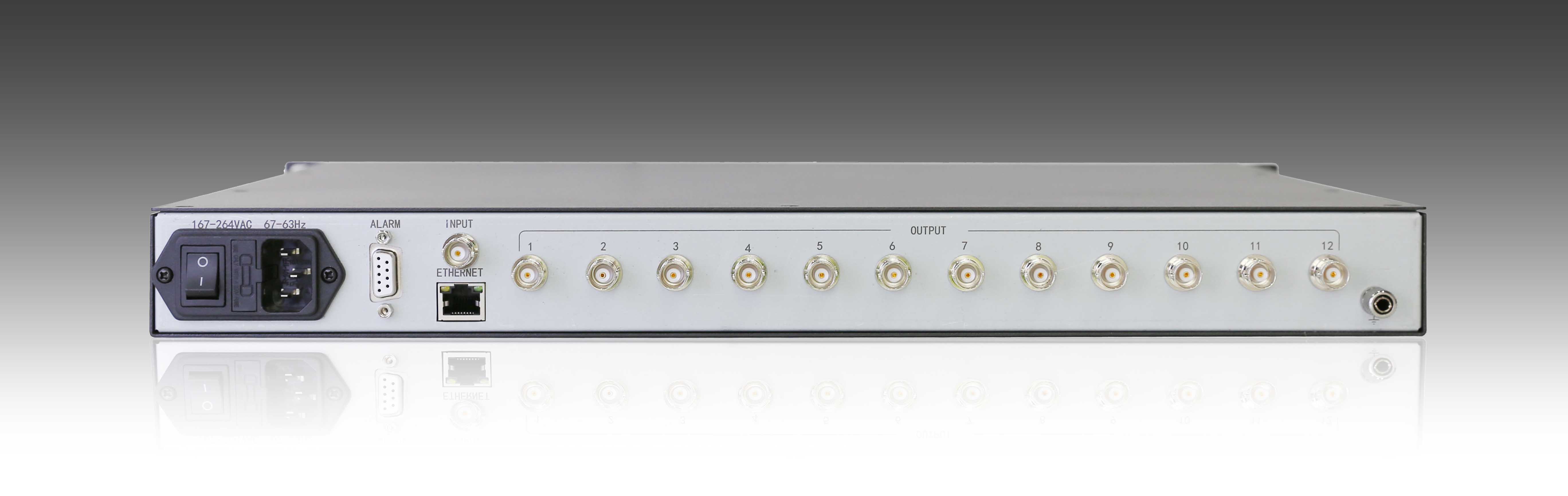 T400-P 提供1路输入和12路输出的脉冲分配放大,1U,19"机箱。从1路输入信号分配12路隔离的输出信号。通过以太网接口可以远程管理和监控所有输入输出信号。任何一个故障都会立即从以太网接口发出报警。前面板还提供绿色的输入状态指示灯,绿色或者红色的输出状态指示灯。